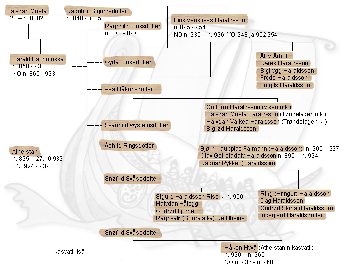 Haraldilla oli ainakin seitsemän vaimoa ja yli kaksikymmentä lasta. Saagat eivät kerro, tehosiko naisiin enemmän Norjan kuninkuus vai kauniit hiukset. Harald antoi lapsilleen valtakuntansa osia hallittavaksi ja moni heistä sai tittelin kuningas. Harald teki Eirik Verikirveestä perijänsä, mutta kiistely Norjan kuninkuudesta jatkui Haraldin kuoltua.